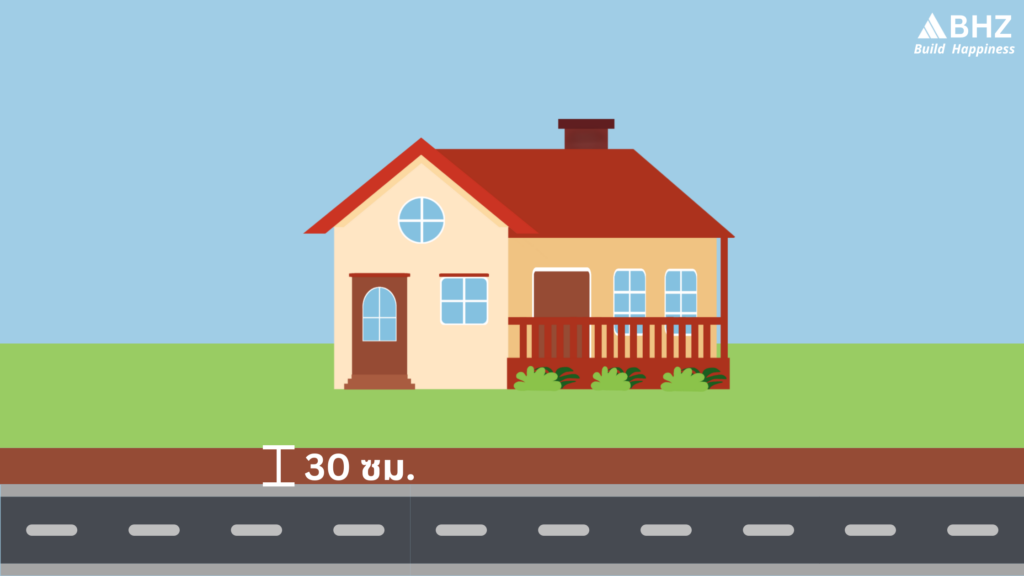 - ถมที่สูงจากถนน 0.3 เมตร หรือ 30 ซม.